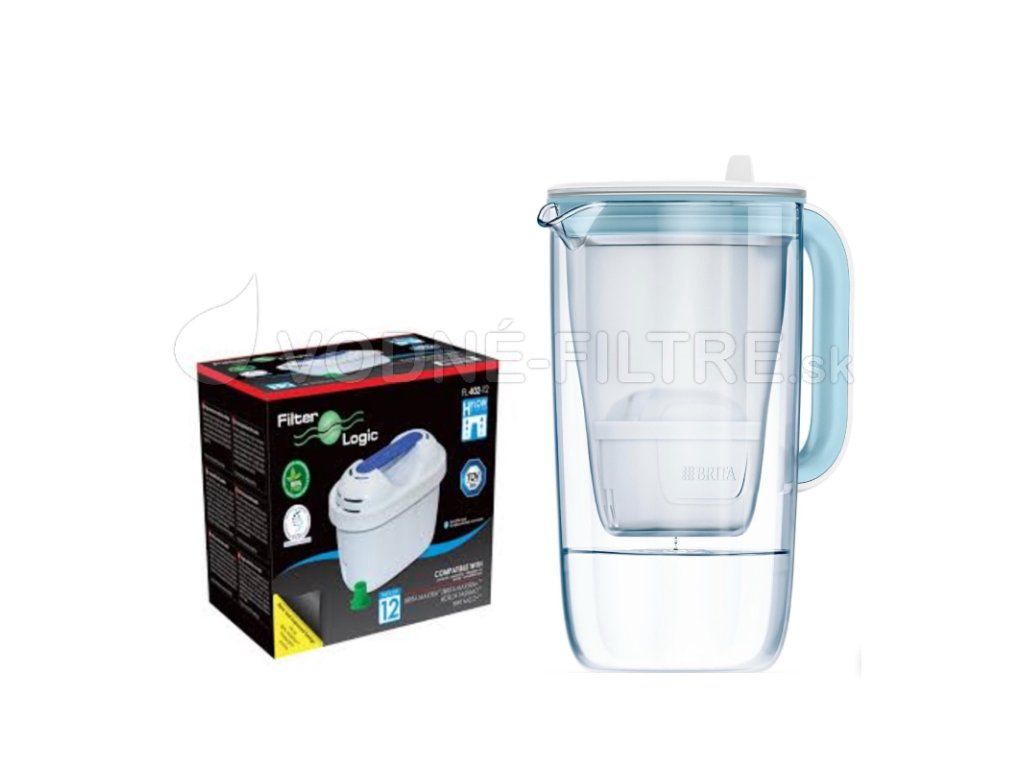 Balenie obsahuje filtračnú kanvicu Brita Glass 2,5 l a 12 filtrov Logic FL-402H.